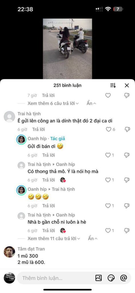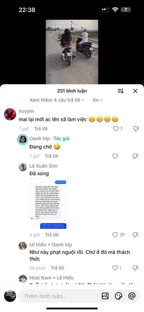 điều khiển xe không đội mũ, dàn hàng ngang còn thách thức anh em tiktok gửi hình ảnh cho công an